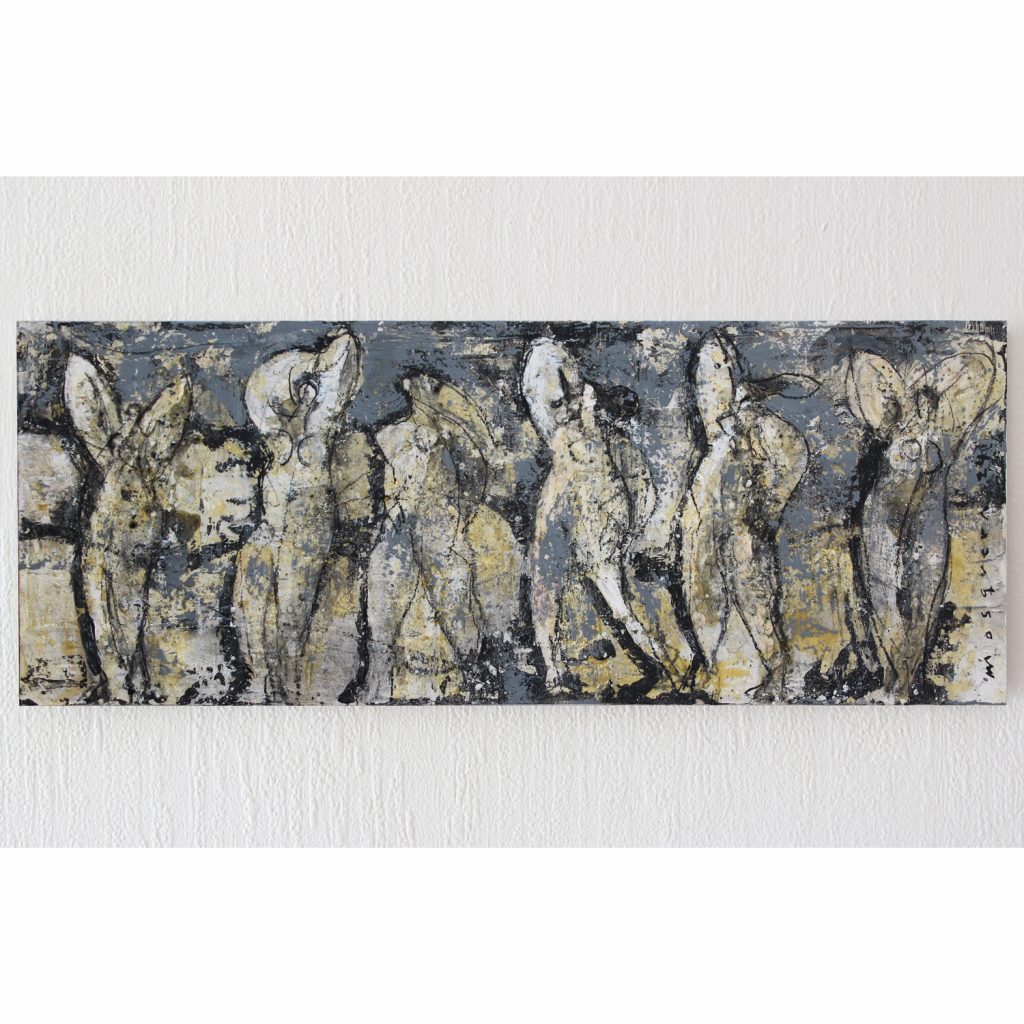 Mulleres na praia do Orzán. 27 x 69 cm. Acrílico sobre lienzo en tablilla. 2024. Colección privada